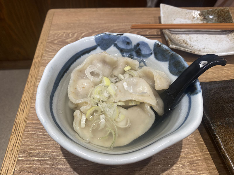 焼き餃子だけでなく、水餃子も人気。つるんとした食感で、肉汁がじゅわっと広がる優しい味わい。お酒を飲んだあとでもスッと食べられるので、〆にもぴったりです。